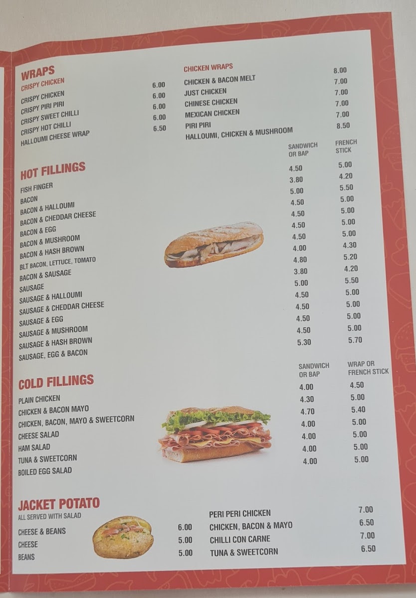 Also, the hot fillings promise comfort and variety, with £4.50 options like Bacon & Halloumi and Blt. Customers rave about the friendly service and generous portions, calling it the perfect stop for delicious roadside food.